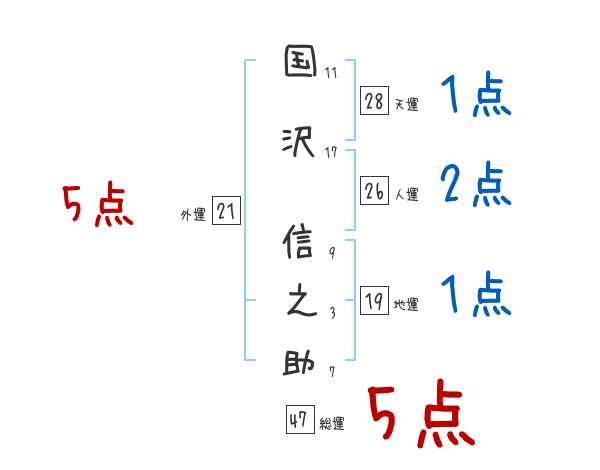 国沢信之助さんの画数の鑑定結果