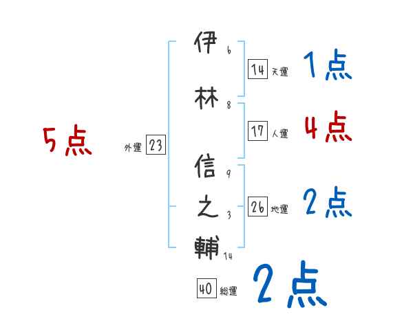 外運![]() | 伊林信之輔さんの外運は23画の5つ星!想像力に優れ活力がある。一代で成功し名誉を手に入れる。 生活面を象徴する運勢です。外部から受ける影響力を表し、結婚運、家庭運や職場、環境への順応性を表します。 |
