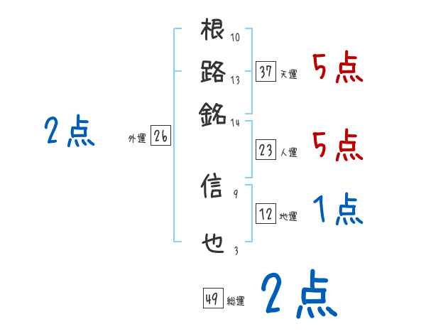 根路銘信也さんの画数の鑑定結果