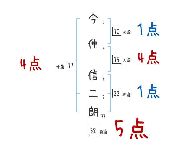 今仲信二朗さんの画数の鑑定結果