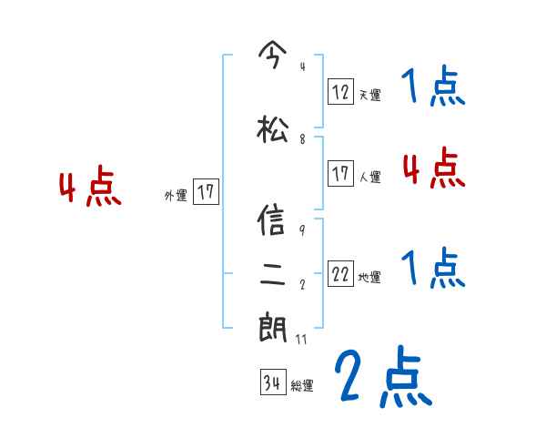 今松信二朗さんの画数の鑑定結果