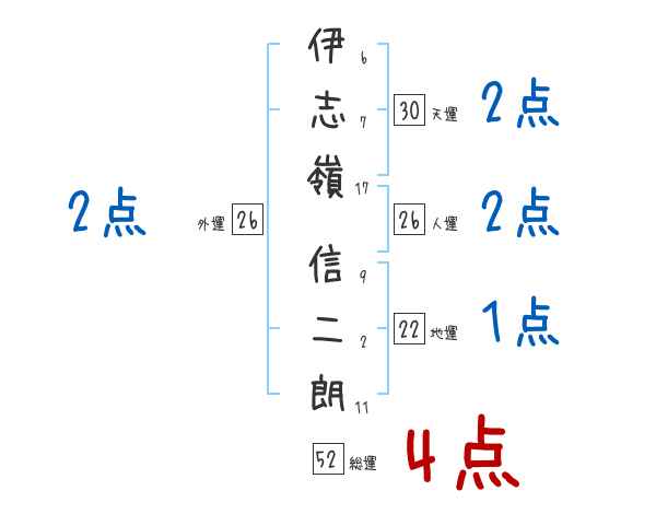 伊志嶺信二朗さんの画数の鑑定結果