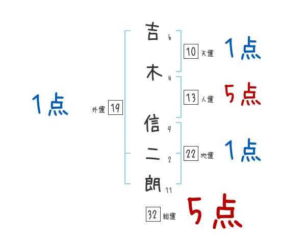 総運![]() | 吉木信二朗さんの総運は32画の5つ星!柔軟性があり成功する。チャンスが多く金運が良い。 あなたの人生を表す1番重要な運勢です。生涯を通じて影響する総合運となり、主に50歳以降の晩年期に影響を及ぼします。 |