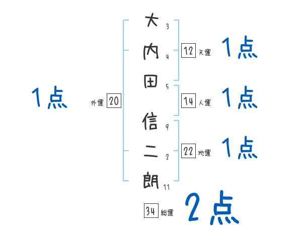 大内田信二朗さんの画数の鑑定結果