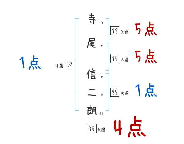 寺尾信二朗さんの画数の鑑定結果