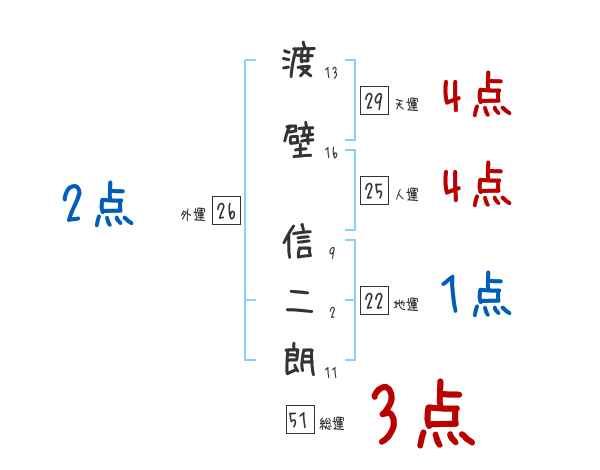 渡壁信二朗さんの画数の鑑定結果