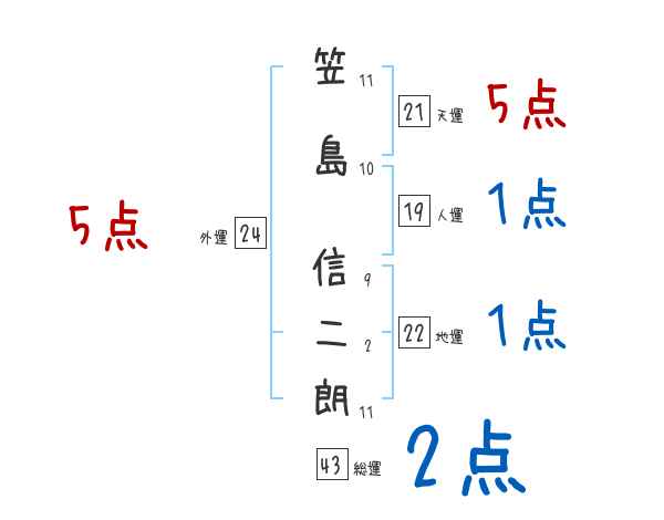 笠島信二朗さんの画数の鑑定結果