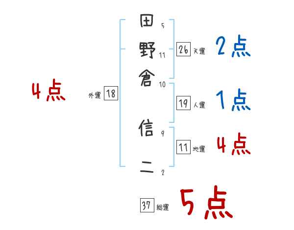 外運![]() | 田野倉信二さんの外運は18画の4つ星!情熱的で剛気。忍耐力があり信頼される。 生活面を象徴する運勢です。外部から受ける影響力を表し、結婚運、家庭運や職場、環境への順応性を表します。 |