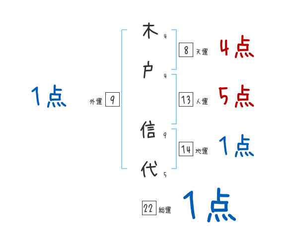 外運![]() | 木戸信代さんの外運は9画の1つ星!消極的で才能を発揮することが苦手なことも。周りの意見に耳を傾けましょう。 生活面を象徴する運勢です。外部から受ける影響力を表し、結婚運、家庭運や職場、環境への順応性を表します。 |