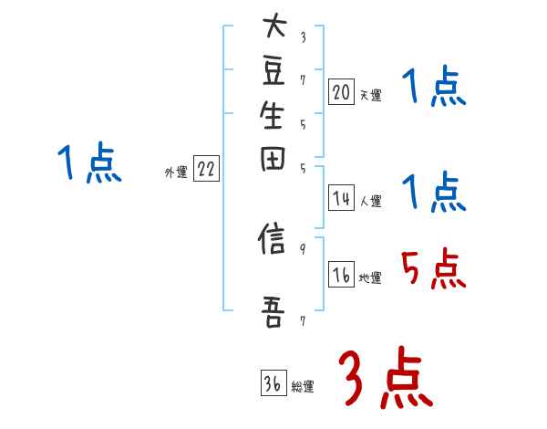 大豆生田信吾さんの画数の鑑定結果