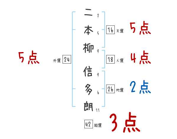 二本柳信多朗さんの画数の鑑定結果