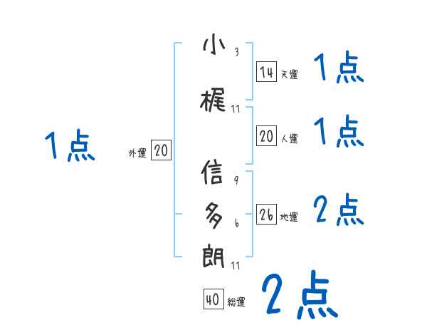 小梶信多朗さんの画数の鑑定結果