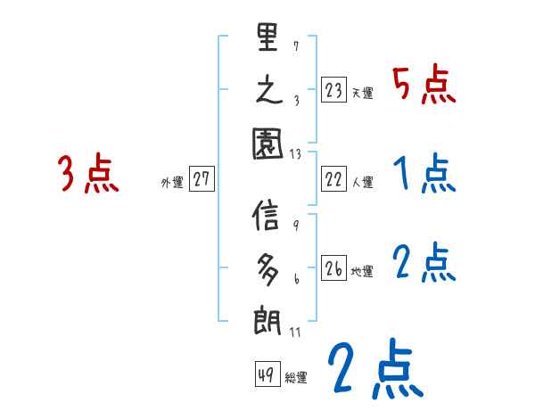 里之園信多朗さんの画数の鑑定結果
