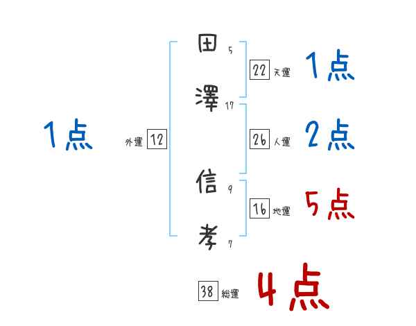 田澤信孝さんの画数の鑑定結果