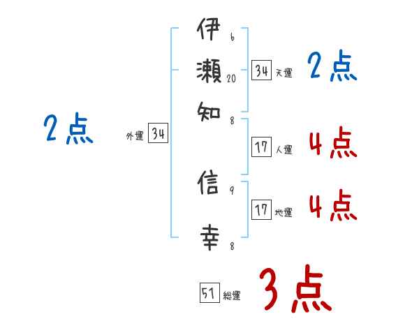 外運![]() | 伊瀬知信幸さんの外運は34画の2つ星!独創性に優れるが、自尊心が強く災難に注意しましょう。 生活面を象徴する運勢です。外部から受ける影響力を表し、結婚運、家庭運や職場、環境への順応性を表します。 |