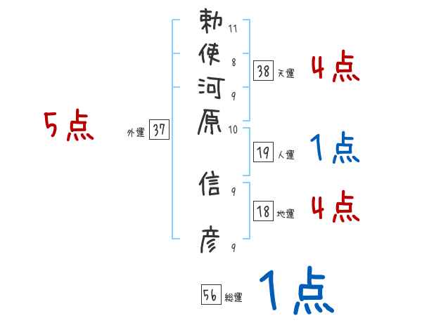 外運![]() | 勅使河原信彦さんの外運は37画の5つ星!努力家で順応性に優れる。現実的な考え方ができ忠実に物事をこなす。 生活面を象徴する運勢です。外部から受ける影響力を表し、結婚運、家庭運や職場、環境への順応性を表します。 |