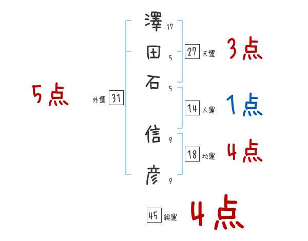 澤田石信彦さんの画数の鑑定結果