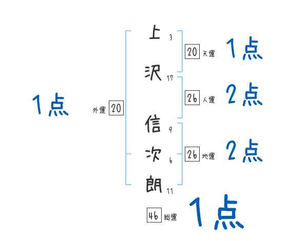 地運![]() | 上沢信次朗さんの地運は26画の2つ星!波瀾万丈かも。信頼できる人を大事にしましょう。 個性を表す基礎的な運勢です。性格形成や対人関係、行動力など家庭環境に影響されます。主に誕生してから20歳くらいまでの若年期の運勢を表します。 |