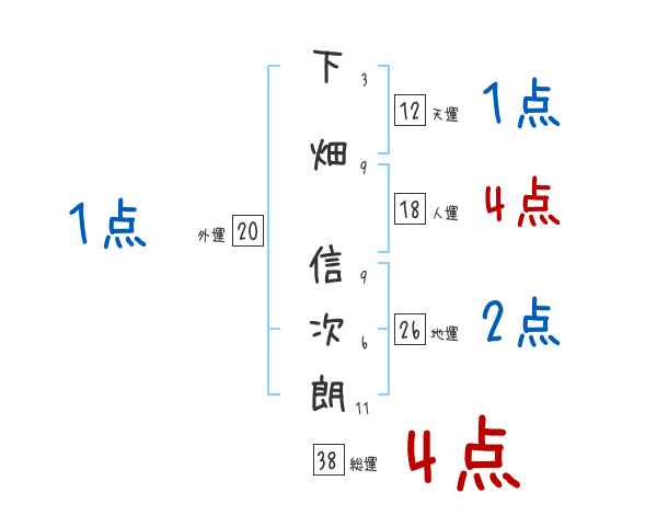 下畑信次朗さんの画数の鑑定結果