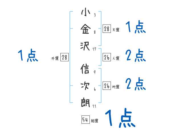 小金沢信次朗さんの画数の鑑定結果
