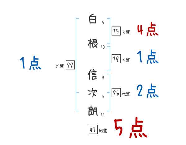 外運![]() | 白根信次朗さんの外運は22画の1つ星!努力することが苦手ないっぽう手先が器用。芸術性にも優れる。 生活面を象徴する運勢です。外部から受ける影響力を表し、結婚運、家庭運や職場、環境への順応性を表します。 |