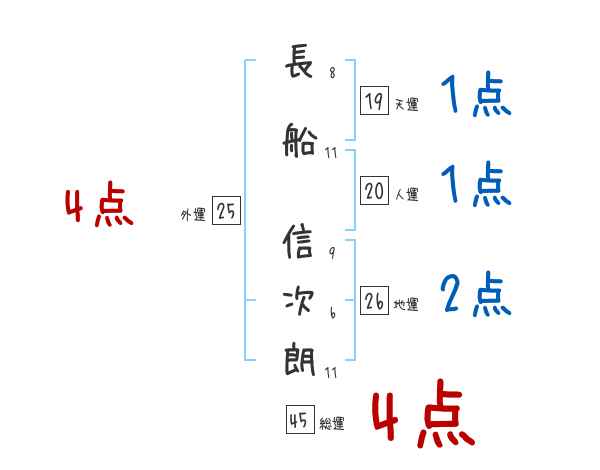 長船信次朗さんの画数の鑑定結果