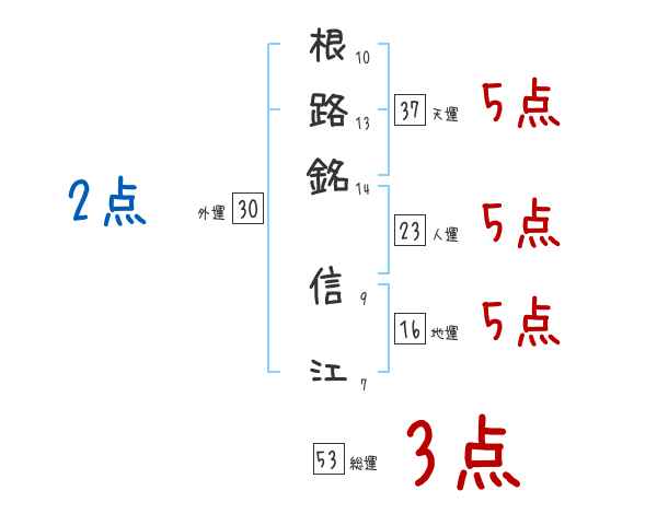 根路銘信江さんの画数の鑑定結果
