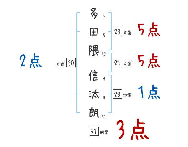 多田隈信汰朗さんの画数の鑑定結果
