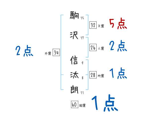 駒沢信汰朗さんの画数の鑑定結果