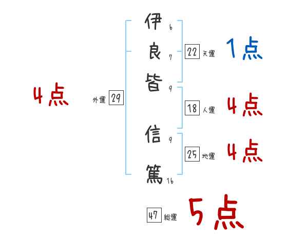 伊良皆信篤さんの画数の鑑定結果