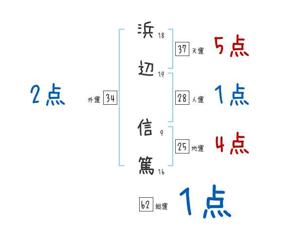 浜辺信篤さんの画数の鑑定結果