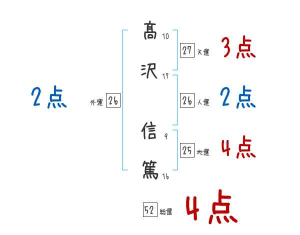 髙沢信篤さんの画数の鑑定結果