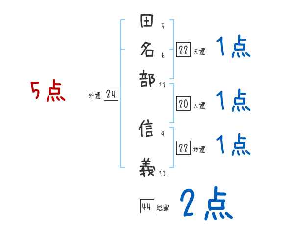 外運![]() | 田名部信義さんの外運は24画の5つ星!家庭運が良く順調な人生。金運にも恵まれる。 生活面を象徴する運勢です。外部から受ける影響力を表し、結婚運、家庭運や職場、環境への順応性を表します。 |