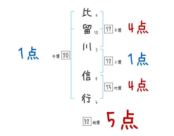 総運![]() | 比留川信行さんの総運は32画の5つ星!柔軟性があり成功する。チャンスが多く金運が良い。 あなたの人生を表す1番重要な運勢です。生涯を通じて影響する総合運となり、主に50歳以降の晩年期に影響を及ぼします。 |
