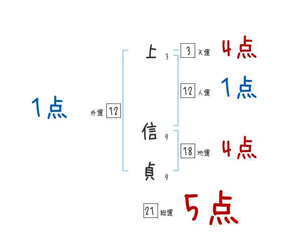 上信貞さんの画数の鑑定結果