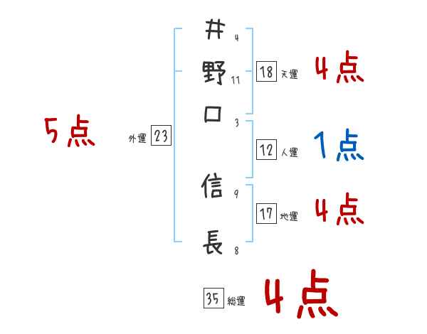 井野口信長さんの画数の鑑定結果