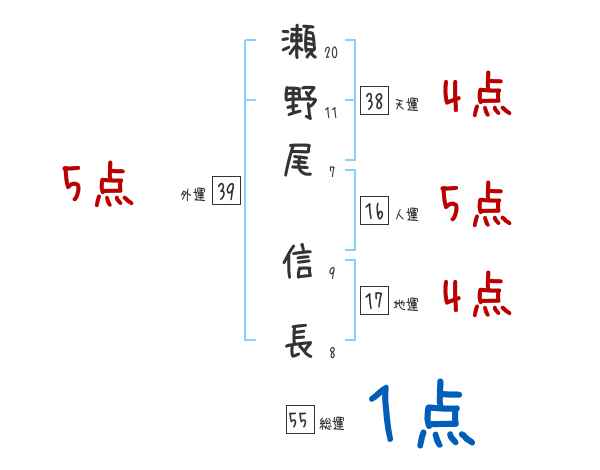 瀬野尾信長さんの画数の鑑定結果