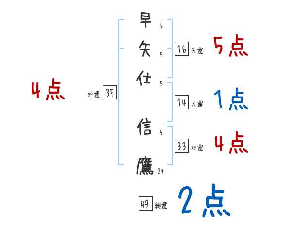 早矢仕信鷹さんの画数の鑑定結果