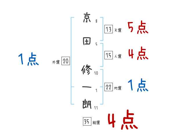 京田修一朗さんの画数の鑑定結果