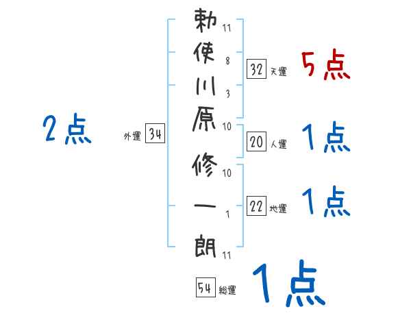 勅使川原修一朗さんの画数の鑑定結果