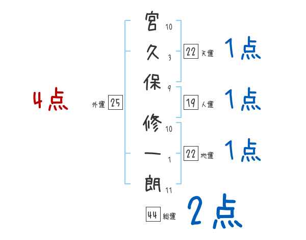 宮久保修一朗さんの画数の鑑定結果