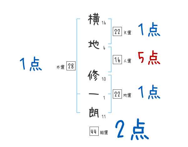 横地修一朗さんの画数の鑑定結果