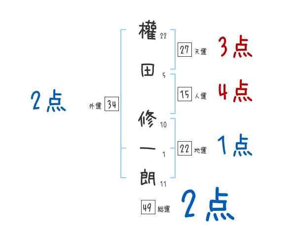 權田修一朗さんの画数の鑑定結果