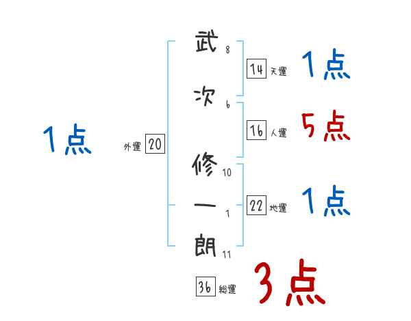 武次修一朗さんの画数の鑑定結果