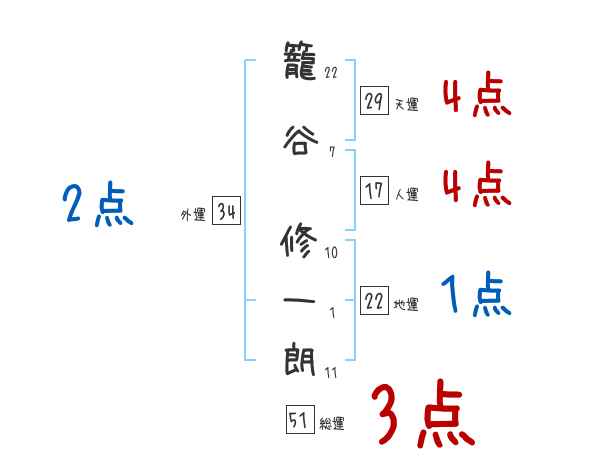 籠谷修一朗さんの画数の鑑定結果