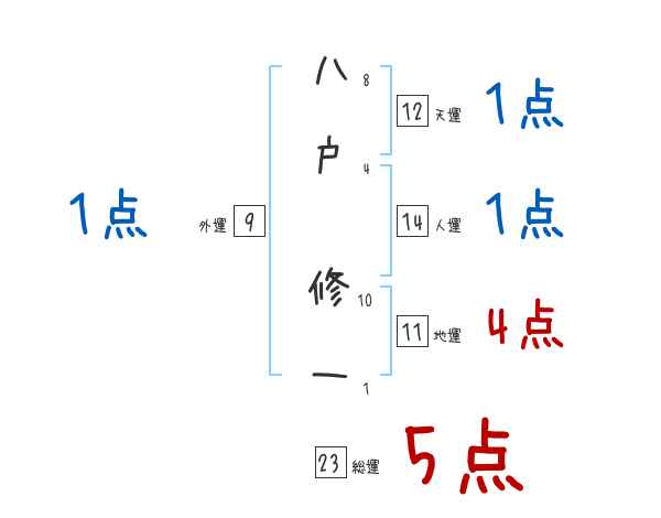外運![]() | 八戸修一さんの外運は9画の1つ星!消極的で才能を発揮することが苦手なことも。周りの意見に耳を傾けましょう。 生活面を象徴する運勢です。外部から受ける影響力を表し、結婚運、家庭運や職場、環境への順応性を表します。 |