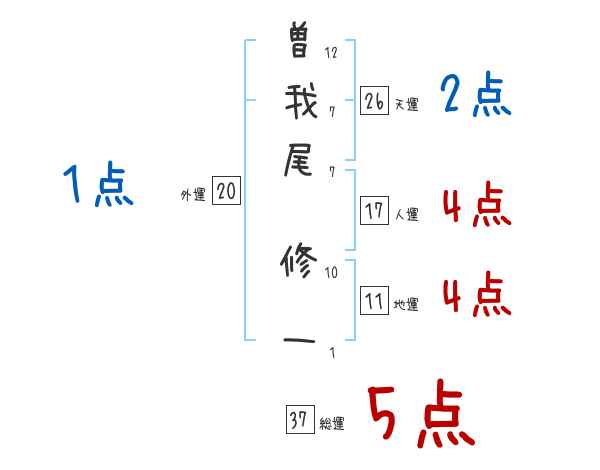 曽我尾修一さんの画数の鑑定結果