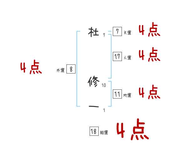 杜修一さんの画数の鑑定結果