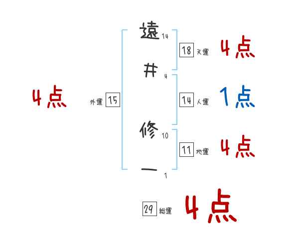 遠井修一さんの画数の鑑定結果