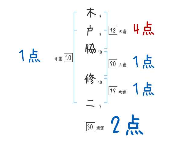 木戸脇修二さんの画数の鑑定結果